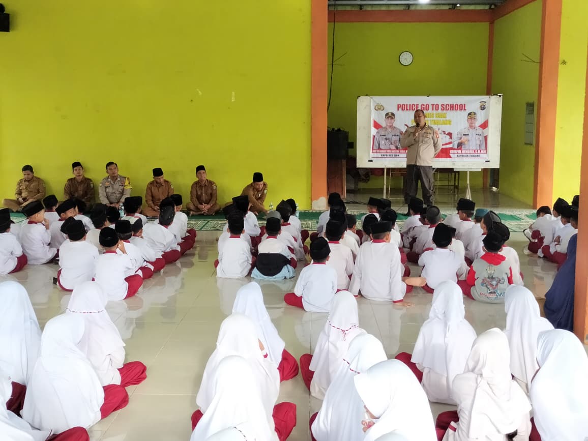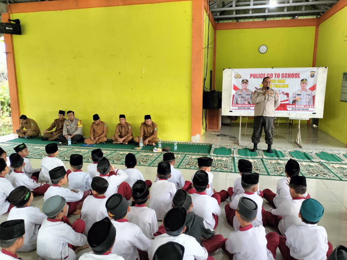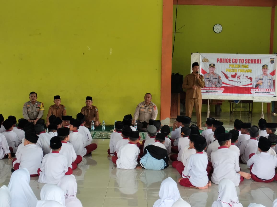 Perawang,— Dalam rangka membangun kedekatan antara Polri dengan dunia pendidikan serta menanamkan nilai disiplin sejak dini, Polsek Tualang melaksanakan kegiatan Police Goes To School di MI Al Wathaniyah, Jalan Pesantren Km. 3, Perawang, Kecamatan Tualang, Kabupaten Siak, Senin (13/10/2025) pagi.