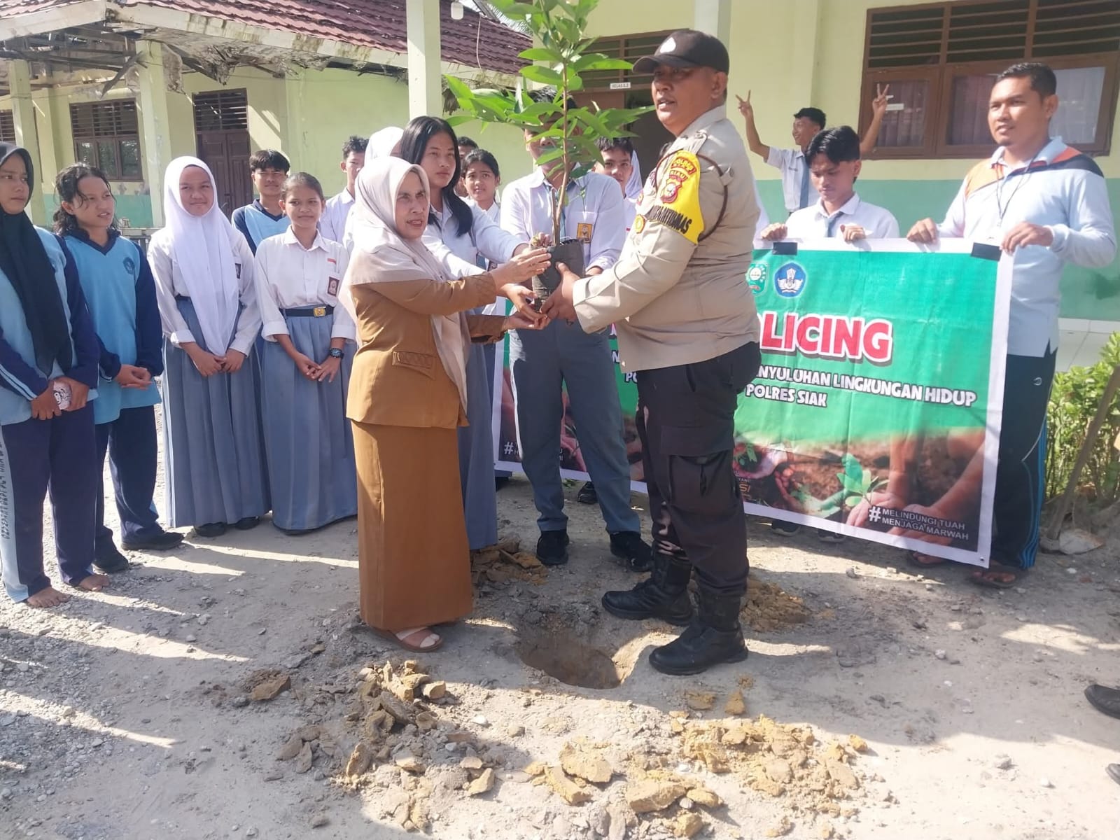 Perawang, Polsek Tualang melaksanakan kegiatan Green Policing di SMA Negeri 3 Tualang, Kampung Pinang Sebatang Timur, Kecamatan Tualang, Kabupaten Siak, Selasa (26/8/2025). Program ini dilakukan sebagai bentuk kepedulian polisi terhadap pelestarian lingkungan.