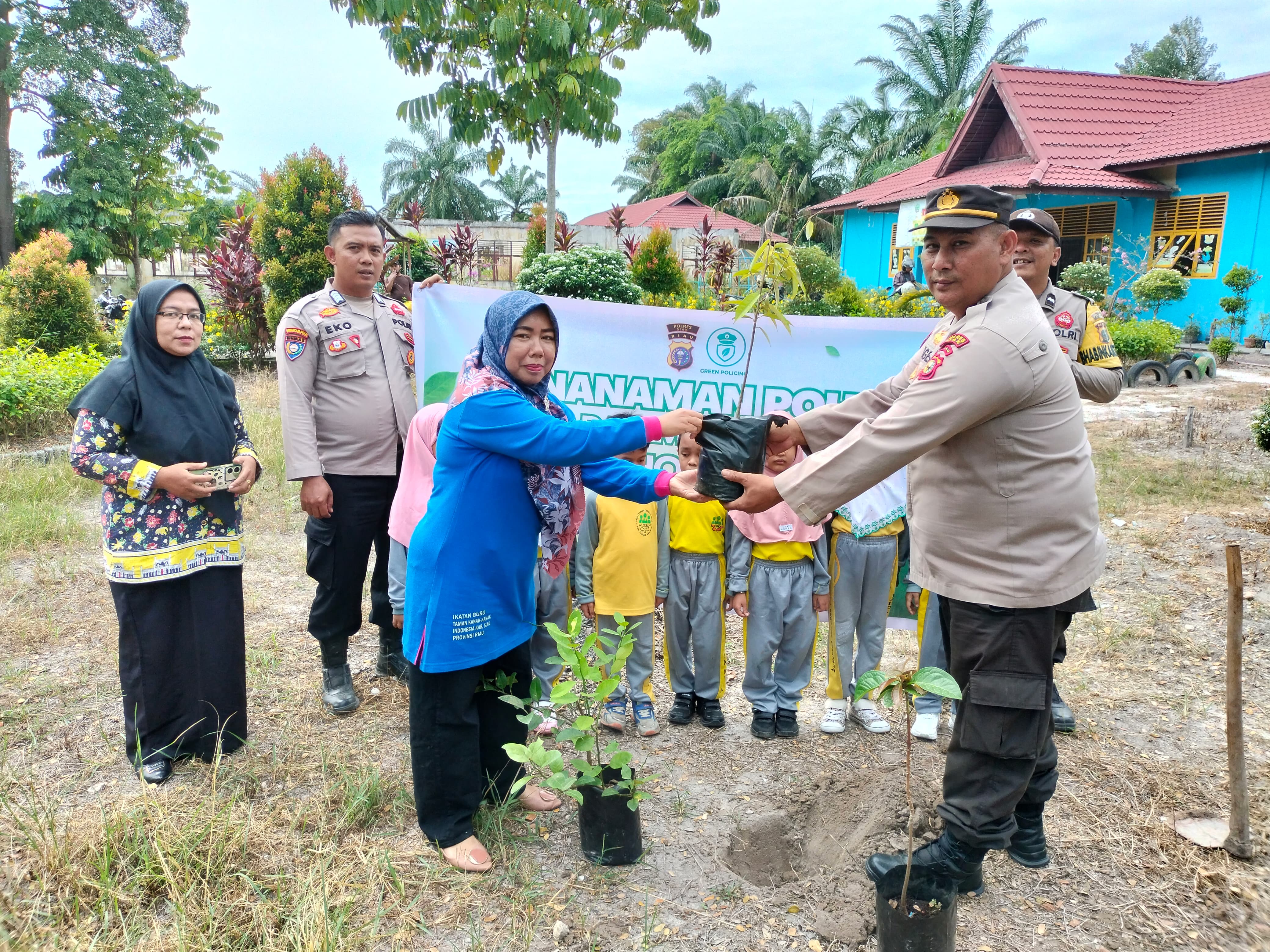 Green Policing Polsek Tualang: Tanam Bibit Jeruk dan Matoa Bersama TK Cendikia Muda di Sekolah