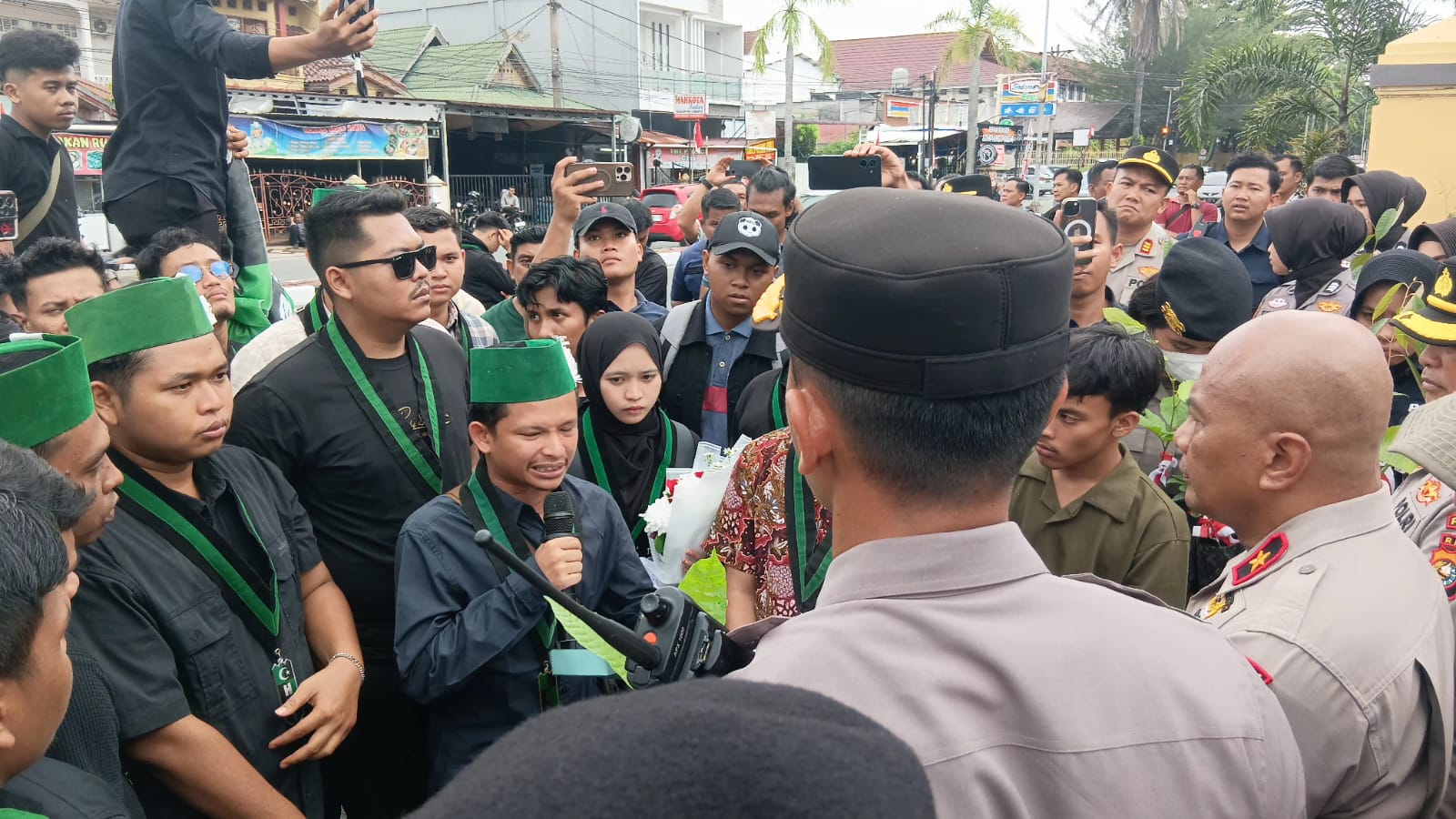 “Kami bisa memilih bahasa yang lebih kasar, kami bisa memilih menghina pimpinan bapak, bahkan kami bisa bebas berbahasa impeachment ketika tujuan kami tidak diterapkan. Tapi yang kami pilih tidak muluk-muluk bapak, kami minta Presiden Prabowo Subianto dan Kapolri Jenderal Listyo Sigit Prabowo (agar) Green Policing dijadikan sebagai standar utama di seluruh Indonesia,” tutupnya disambut tepuk tangan.