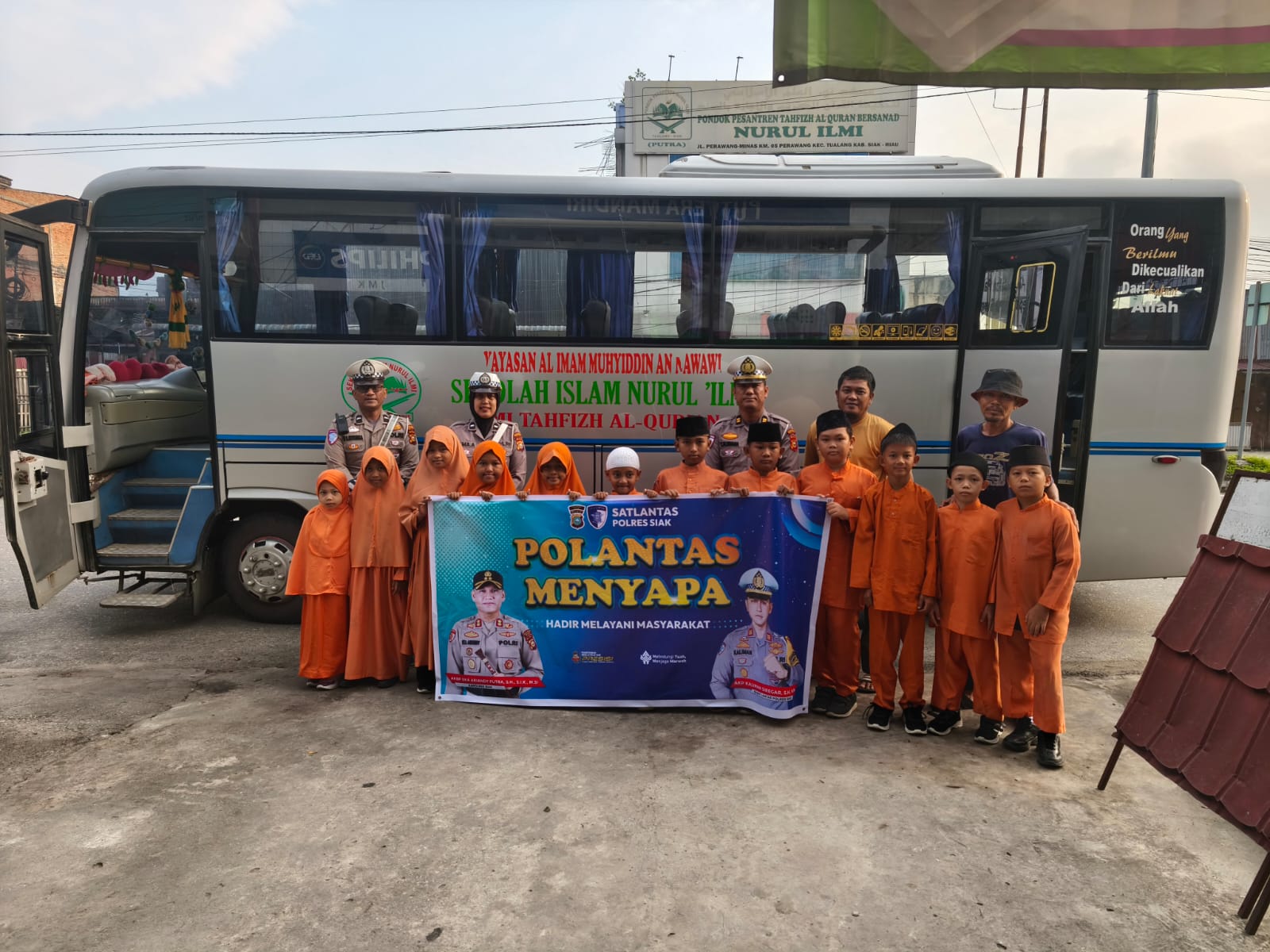 Kegiatan dipimpin langsung Kanit Lantas Polsek Tualang IPTU Candra Herianto Sinaga, SH bersama personel Aipda Helmi Surya Ritonga, Aipda Isma Afrina, dan Aipda Amirdas. Sejak pukul 07.00 WIB, Polantas menyapa para siswa, memberikan edukasi tentang tertib berlalu lintas di dalam bus sekolah, hingga berbagi snack untuk menambah semangat anak-anak.