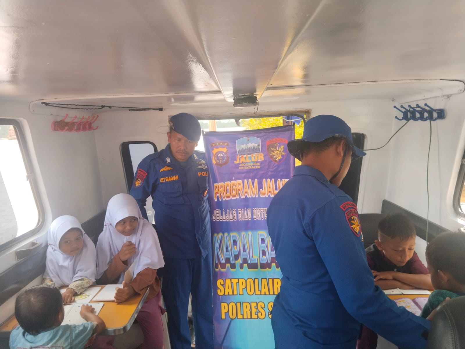 Siak – Polres Siak melalui Satuan Polisi Perairan dan Udara (Satpolairud) terus menghadirkan inovasi dalam mendekatkan diri kepada masyarakat pesisir. Kali ini, dalam rangka Program JALUR (Jelajah Riau Untuk Rakyat), Satpolairud Polres Siak menggelar kegiatan Kapal Baca atau Pustaka Terapung di Perairan Teluk Batil, Kecamatan Sungai Apit, Kabupaten Siak, pada Jumat (29/8/2025).