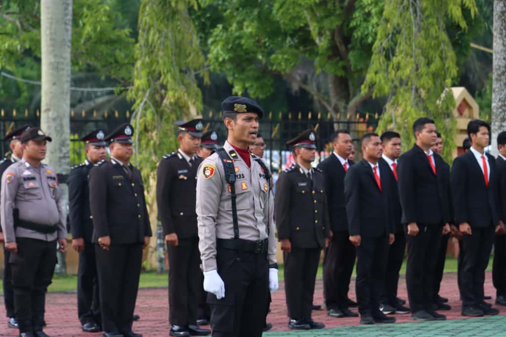 Turut hadir dalam kegiatan ini para Pejabat Utama Polres Siak, para Kapolsek jajaran, perwira, bintara, serta ASN Polres Siak. Rangkaian acara berjalan sesuai susunan, mulai dari penghormatan pasukan, mengheningkan cipta, pembacaan teks Pancasila, pembukaan UUD 1945, ikrar, doa, hingga menyanyikan lagu Andhika Bhayangkari.