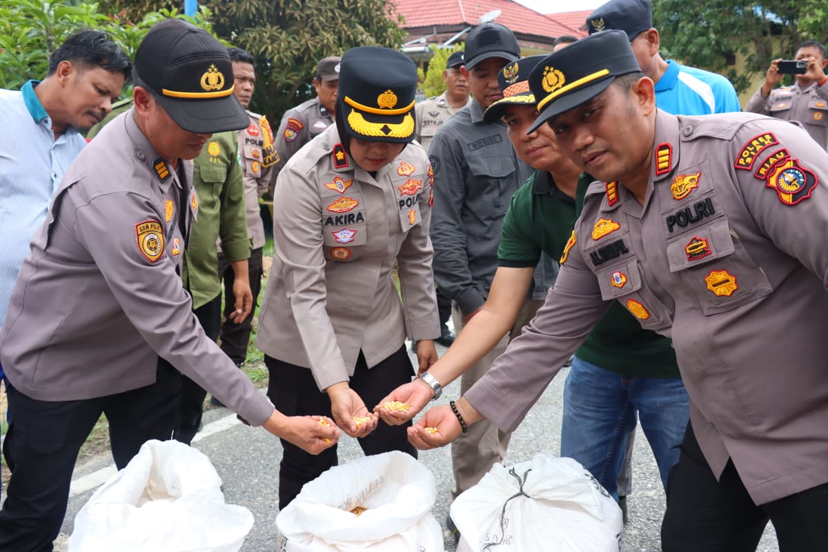 Turut hadir dalam kegiatan ini antara lain Camat Kerinci Kanan Heppy Candra SKM., M.Si., Kabag SDM Polres Siak AKP Sohermansyah, S.H., Kapolsek Kerinci Kanan AKP Januar Eddwin Sitompul, S.H., M.H., perwakilan Dinas Pertanian Kabupaten Siak, pengurus pertanian wilayah, para penghulu kampung se-Kecamatan Kerinci Kanan, serta jajaran personel Polsek dan Polres Siak.