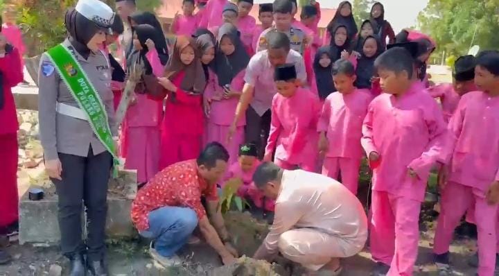 Usai penyuluhan, kegiatan dilanjutkan dengan penanaman bibit pohon di lingkungan sekolah sebagai simbol nyata kepedulian terhadap bumi. Siswa-siswi tampak bersemangat ikut menanam bersama personel kepolisian dan para guru.
