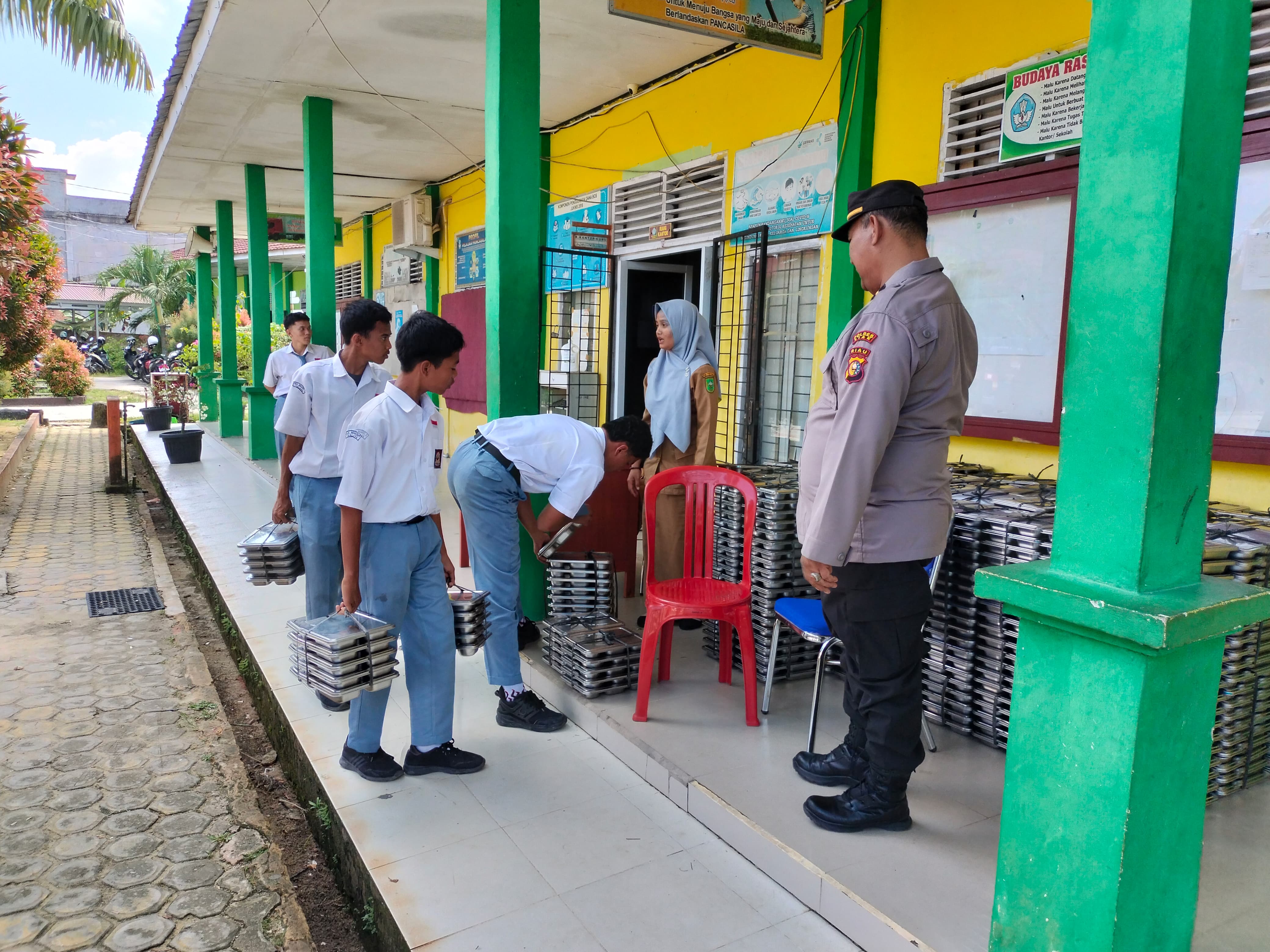 Tualang – Polsek Tualang melaksanakan kegiatan pengecekan sekaligus pendistribusian makan bergizi gratis bagi pelajar di SMA Negeri 5 Tualang, Kampung Perawang Barat, Kecamatan Tualang, Kabupaten Siak, Selasa (26/8/2025) pukul 11.00 WIB.