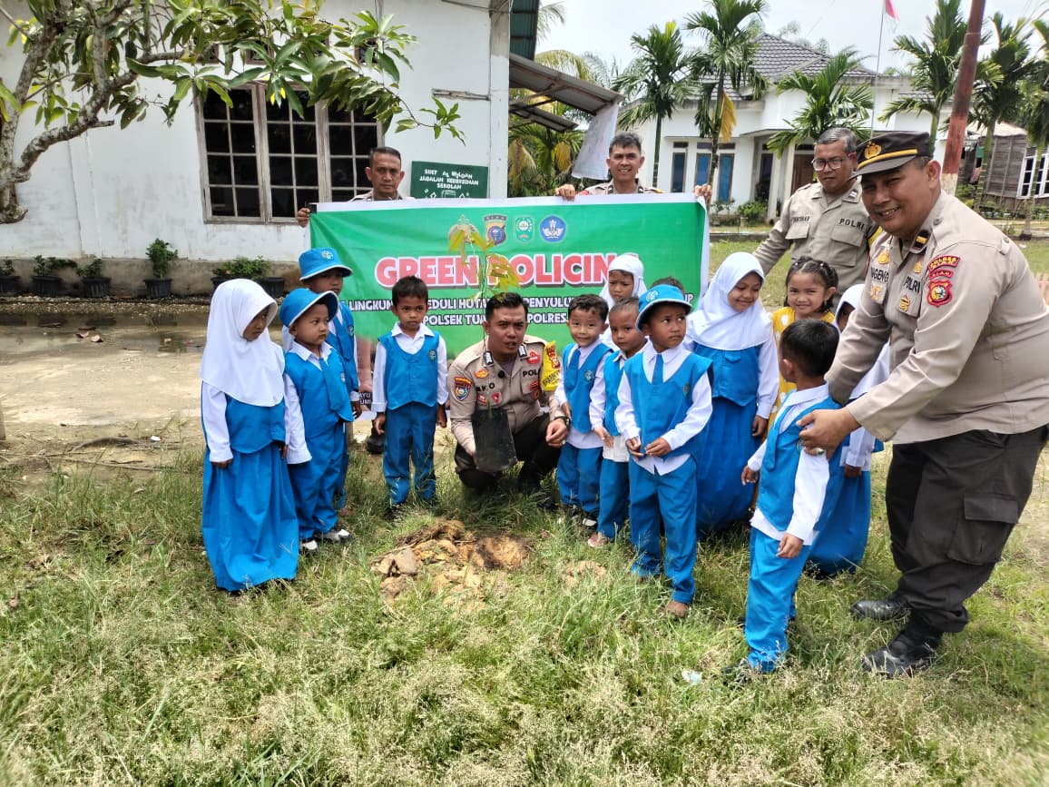Perawang, – Dalam upaya menumbuhkan kesadaran menjaga lingkungan sejak dini, Polsek Tualang melaksanakan kegiatan Green Policing di TK Bunayya Tualang, Jalan Hangtuah Km 3, Kampung Tualang, Kecamatan Tualang, Kabupaten Siak, Kamis (16/10/2025).