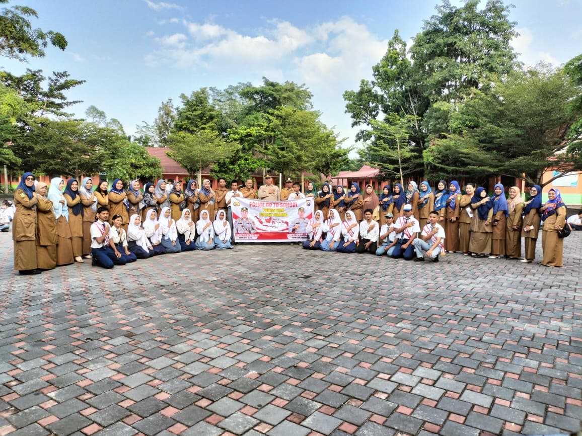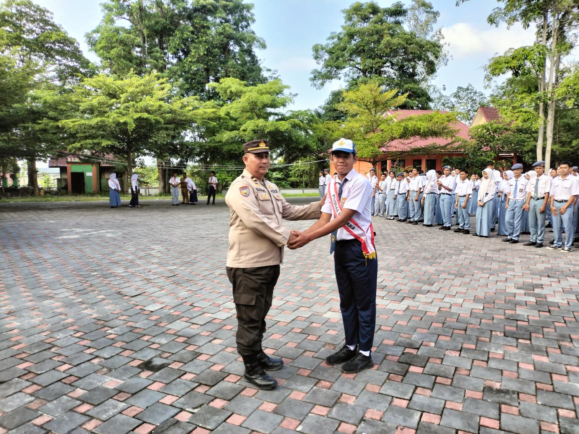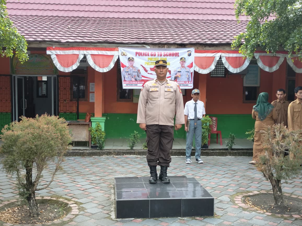 Perawang– Panit Binmas Polsek Tualang Ipda Sugeng Mishari, S.H memimpin pelaksanaan program Police Goes To School di SMKN 1 Tualang, Kecamatan Tualang, Kabupaten Siak, Senin (22/9/2025) pagi.