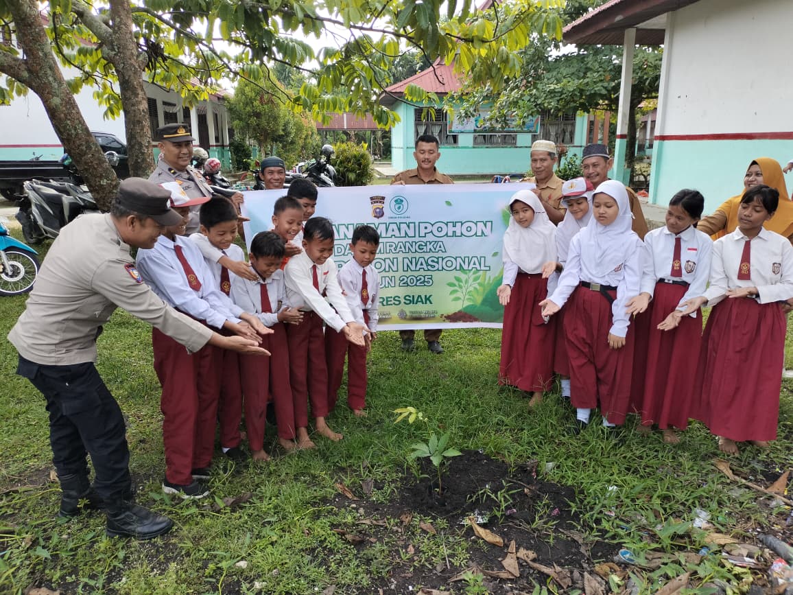 Ruang Hijau untuk Anak: Polsek dan SDN 11 Tualang Bersinergi Tanam Pohon
