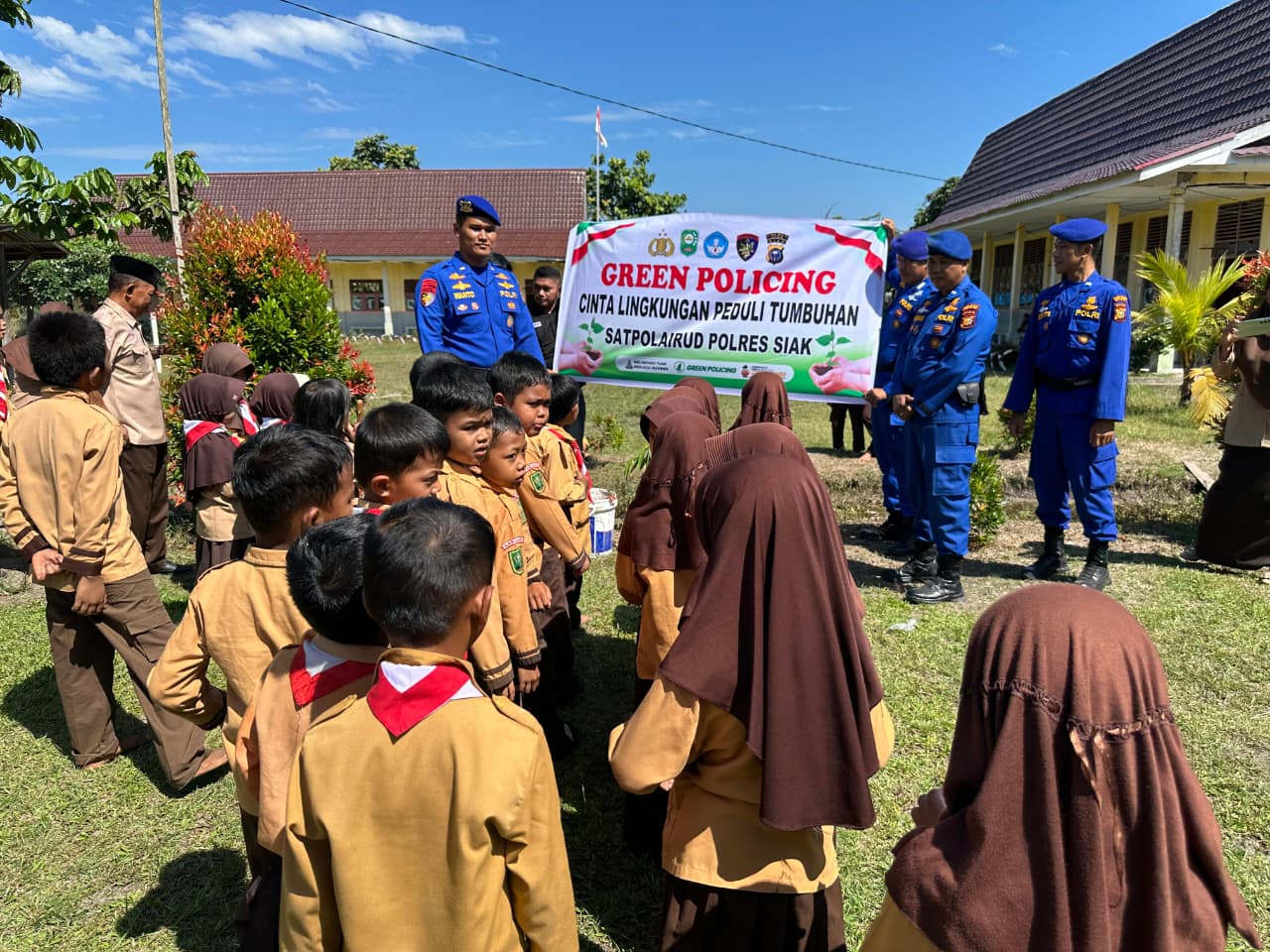 Siak — Dalam upaya menumbuhkan kesadaran generasi muda terhadap pentingnya menjaga kelestarian alam, Satuan Polisi Perairan dan Udara (Sat Polairud) Polres Siak melaksanakan kegiatan Green Policing di SDN 08 Kampung Berbari, Kecamatan Pusako, Kabupaten Siak, Kamis (30/10/2025).
