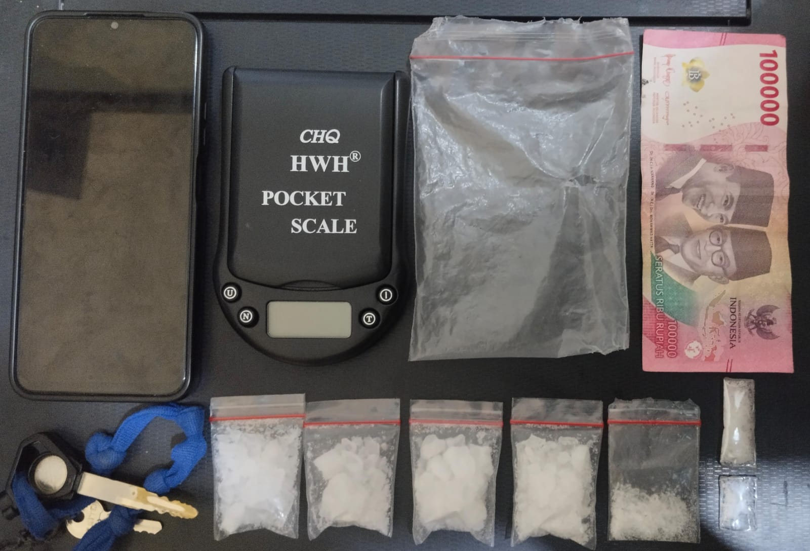 Selain shabu dengan berat kotor 0,80 gram, polisi juga menyita barang bukti lain berupa uang tunai pecahan Rp100 ribu dan Rp50 ribu, dua unit telepon genggam, serta perlengkapan lainnya yang diduga terkait dengan aktivitas peredaran narkoba.