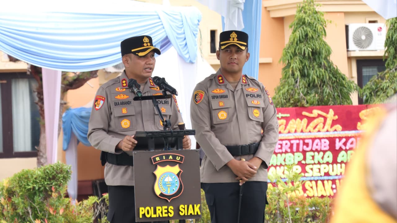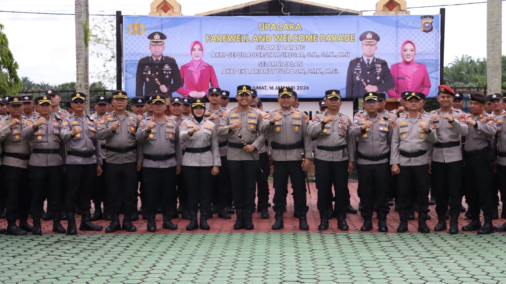 Siak,  — Suasana penuh haru dan khidmat mewarnai serah terima jabatan Kapolres Siak yang dilaksanakan di Mapolres Siak pada Jumat, 16 Januari 2026, sekitar pukul 08.30 WIB. Upacara Farewell Parade ini menandai peralihan kepemimpinan dari AKBP Eka Ariandy Putra, S.H., S.I.K., M.Si., kepada AKBP Sepuh Ade Irsyam Siregar, S.H., S.I.K., M.H.