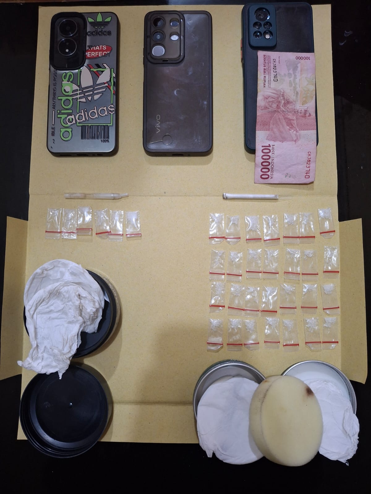 “Pelaku sempat berusaha kabur dari Jendela kamar belakang namun berhasil diamankan. Dari hasil penggeledahan, ditemukan jumlah barang bukti sabu seberat 5.0 gram yang terdiri dari 28 (dua puluh delapan) plastik klip warna putih bening dengan lish merah yang berisikan diduga Narkotika jenis sabu-sabu dengan berat kotor 4,0 Gram dan 6 (enam) plastik klip warna putih bening dengan lish merah yang berisikan diduga Narkotika jenis sabu-sabu dengan berat kotor 1,0 Gram yang disimpan di dalam kamar,” jelas Kapolsek.
